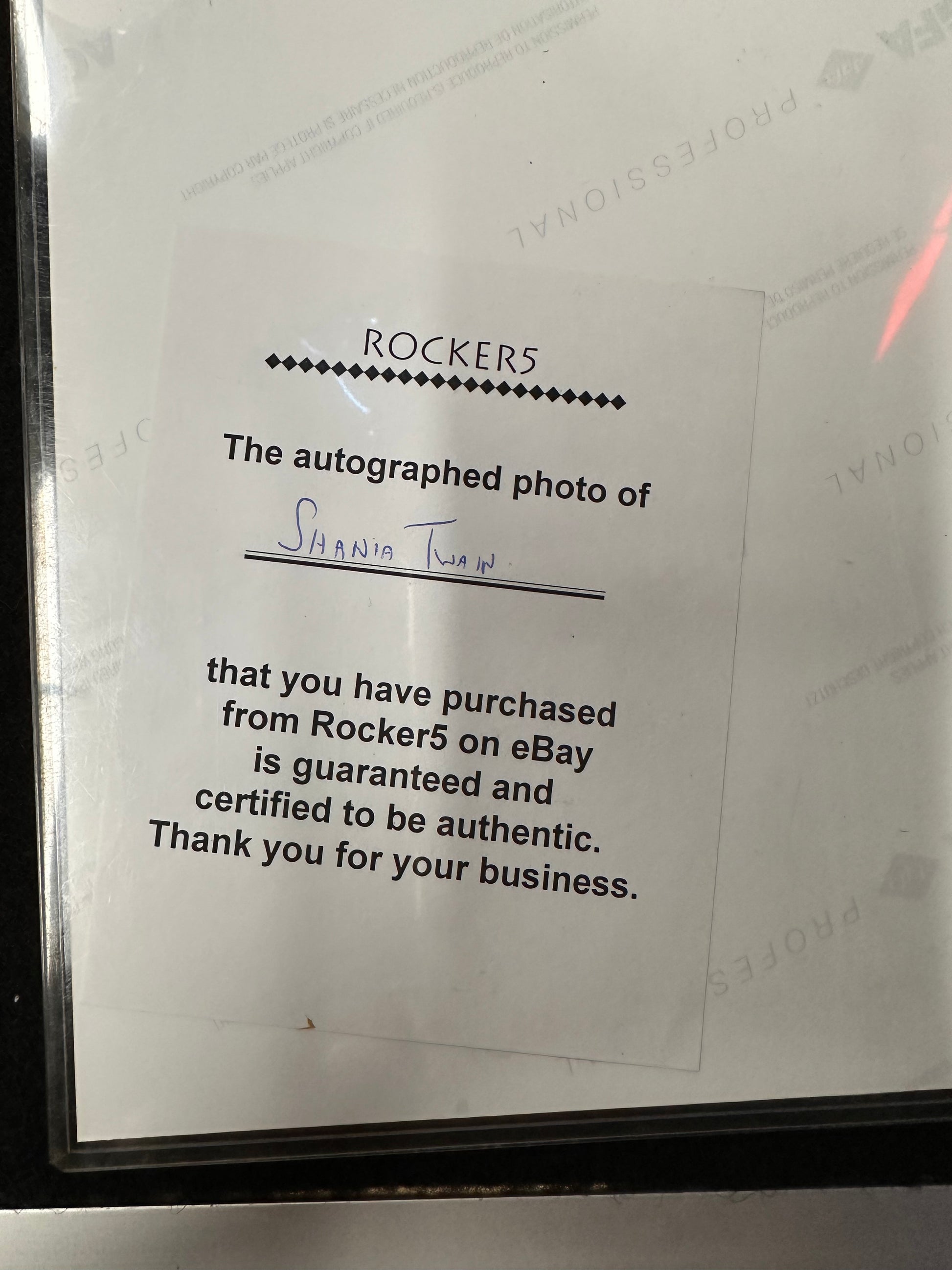 SHANIA TWAIN AUTOGRAPH WITH C.O.A