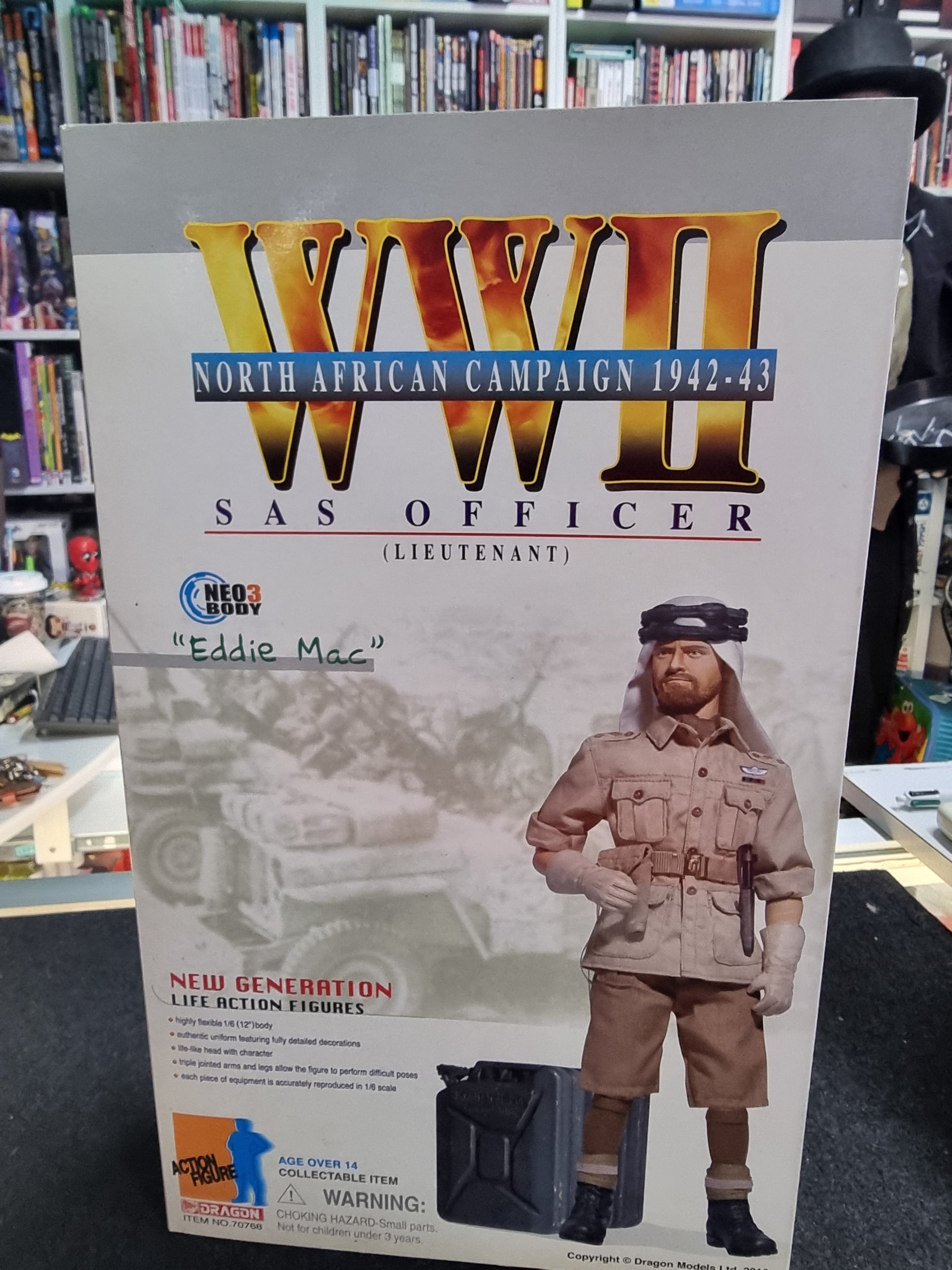 The recently released 1:6 scale 12-inch figure from DML Dragon Models Ltd depicts SAS Officer Lieutenant "Eddie Mac" during the North African Campaign of World War II, circa 1942-43. This figure stands out as one of the most iconic representations of the British SAS operating behind enemy lines during WWII. The attention to detail and historical accuracy make it a must-have for collectors and history enthusiasts alike